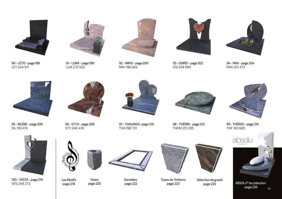 Appréciez 100 modèles différents, commercialisez le fruit de 100 jours de création, recherche et développement. Ce nouvel outil est une vision contemporaine et adaptée de la marbrerie funéraire d’aujourd’hui. Chaque détail a été imaginé et conçu avec un seul objectif : créer l’exclusivité !